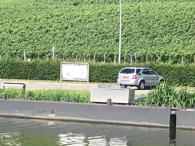 The navigable Moselle is nearly 400 kms long and starts at Méréville in the north where it has a junction with the canal des Vosges and ends when it joins the Rhine. We've only travelled on the first part and there were distance markers at nearly every 1/2 kilometre. We have only included the full kilometre markers apart from one 1/2 to show as an example.